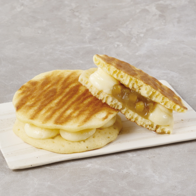 しっとりとやわらかく虎模様に焼き上げた生地に茨城県産の和栗を使用した栗あんと沖縄の海水塩を入れたバタークリームをはさんだ季節限定のどら焼です。