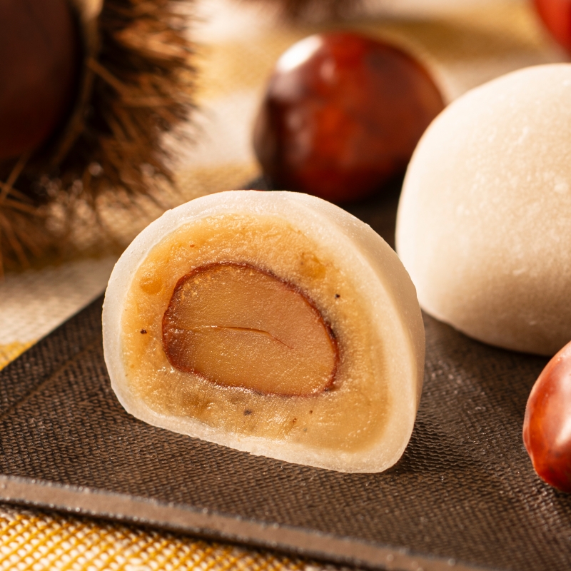 幻の栗と称される茨城県産「利平種栗」をふんだんに使用した栗餡で大粒の国産渋皮和栗を包みやわらかな羽二重餅で仕上げた贅沢な大福です。