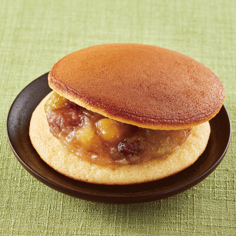 青えんどう、ひよこ豆、金時豆、白いんげん、大納言の5種類の豆をふんだんに使用した餡をしっとりふんわり食感の生地で挟んだ季節限定のどら焼です。