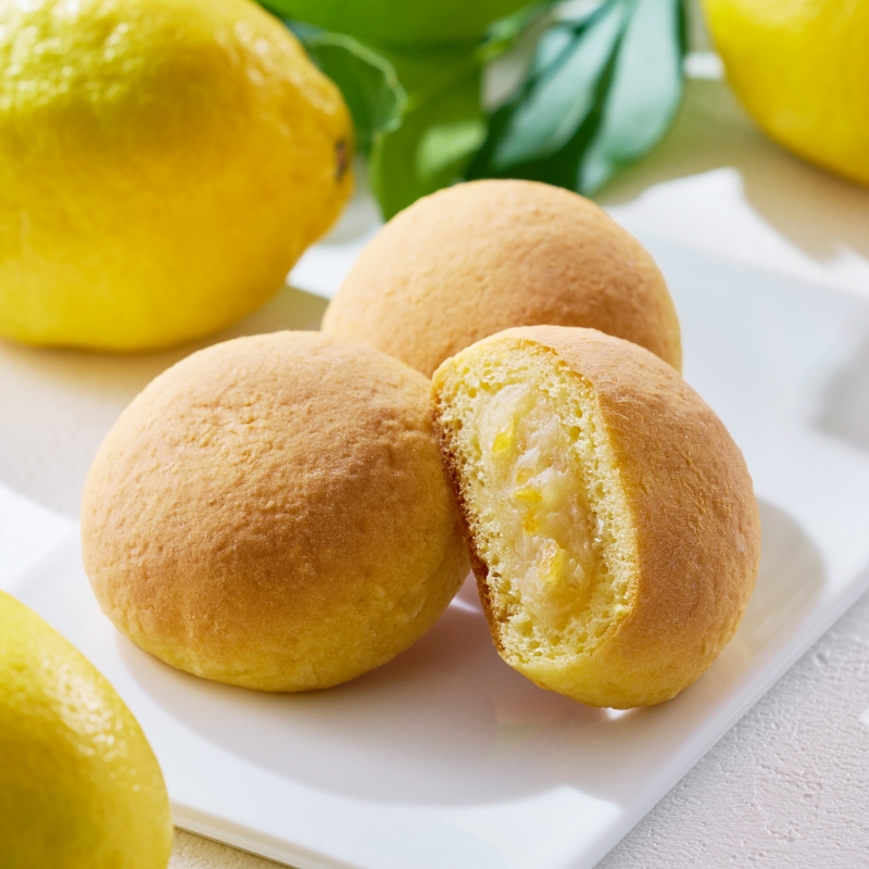 瀬戸内産檸檬とスペイン産檸檬を合わせた檸檬あんを、卵をたっぷり使用したふんわり食感の生地で包みました。ひと口食べると檸檬の爽やかな風味が広がる夏限定のふっくら福笑みです。