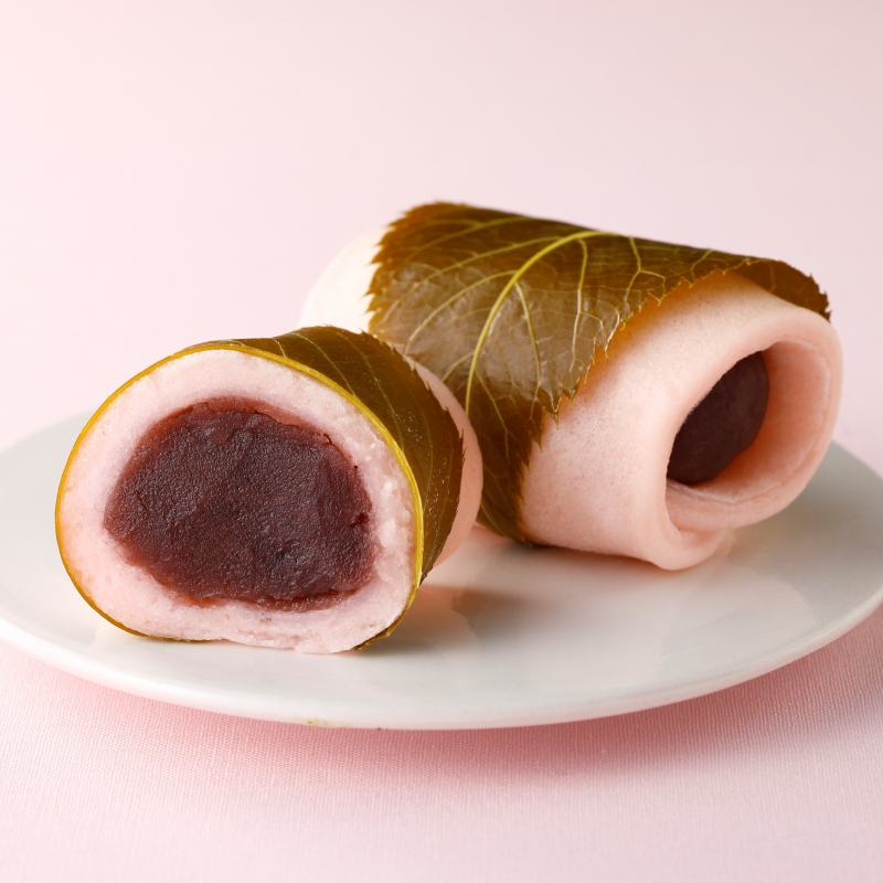 北海道産の小豆を使用したこしあんを、もちもちとした桜色の焼き皮でくるみ、香り良い桜葉で巻いて仕上げた季節限定の和菓子です。